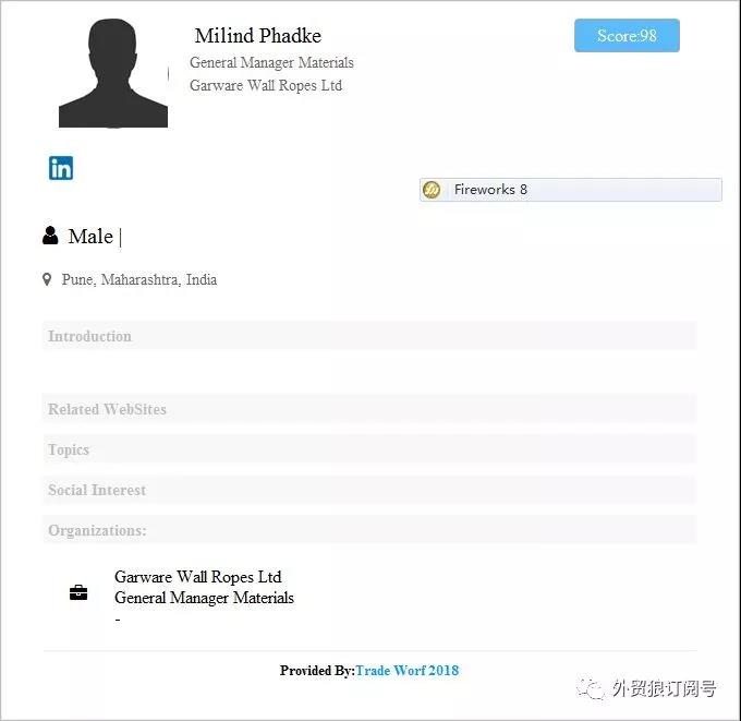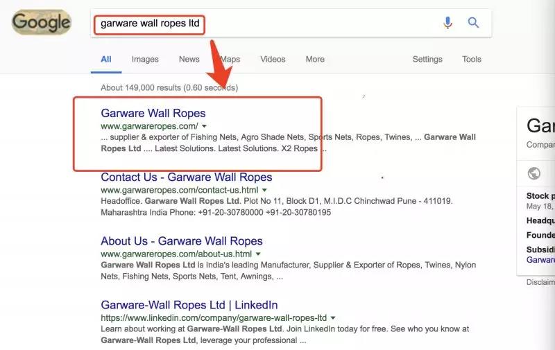 放大細(xì)節(jié),選擇了其中一家(garware wall ropes ltd )做分析,可以很清楚的看到,他采購過pp rope,但是沒有具體聯(lián)系方式,怎么辦?如下: