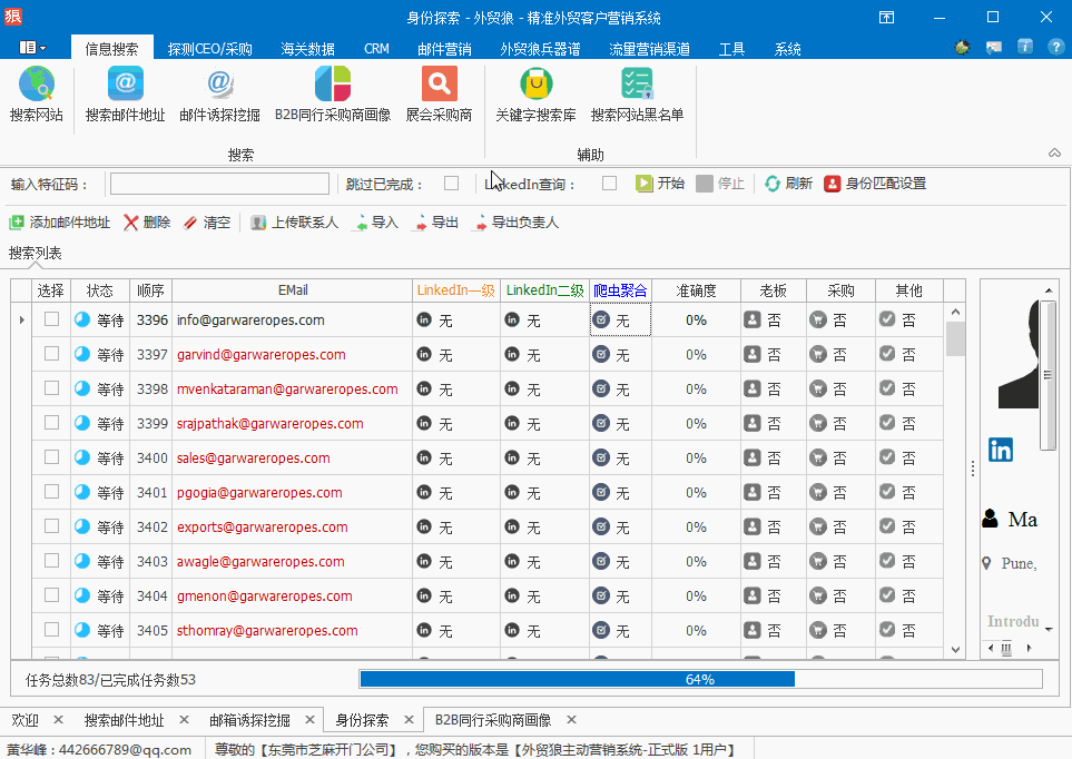 思考:僅僅只有公司名稱,但是想找到公司的核心聯(lián)系人,有辦法嗎?看外貿(mào)狼是如何操作的,繼續(xù)...